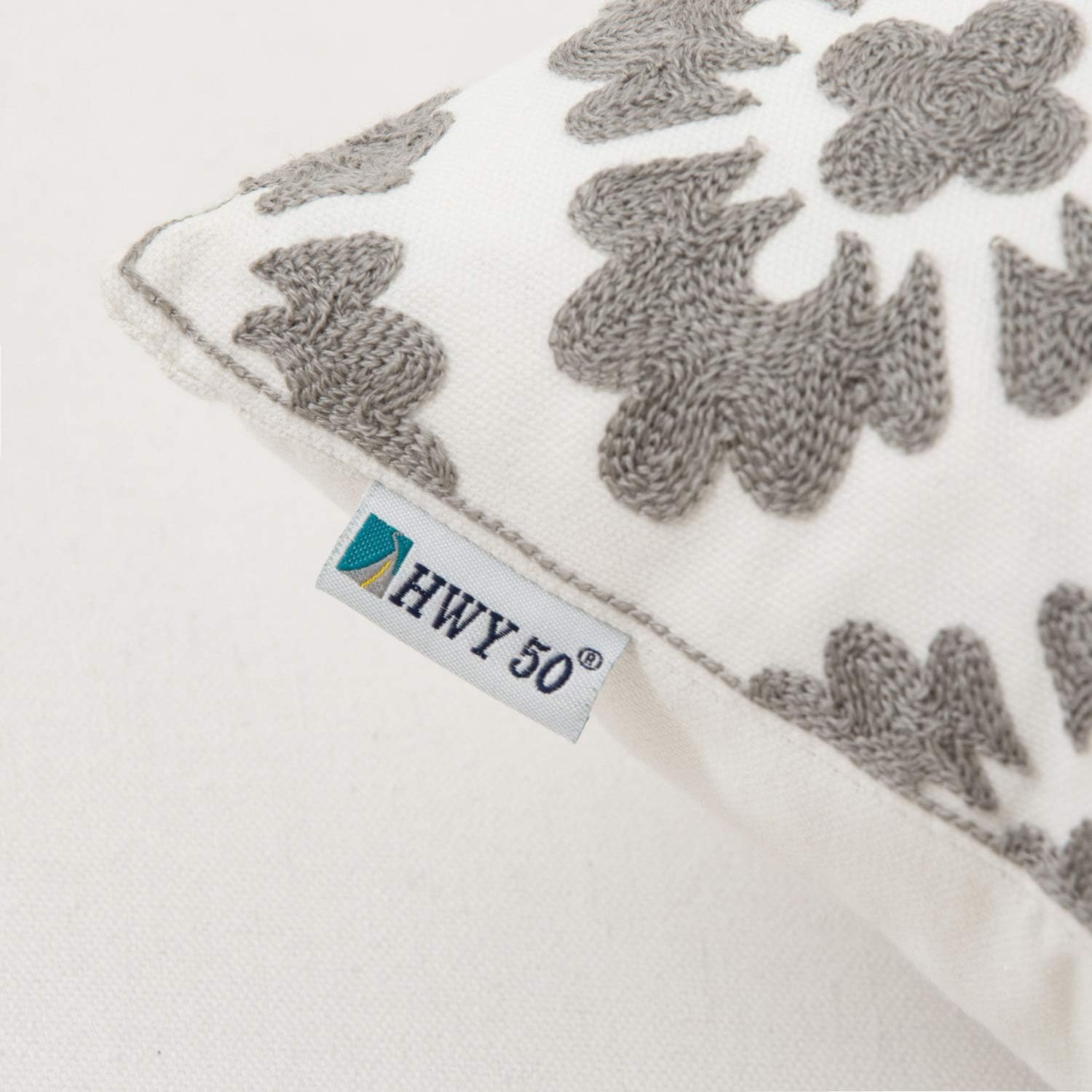 HWY 50 Grey Gray Decorative Throw Pillow Covers 18x18 Inch (1 Piece), Embroidered Cotton Farmhouse Cushion Cover Pillow Case for Sofa Couch Living Room Bed, Geometric Diamond Floral