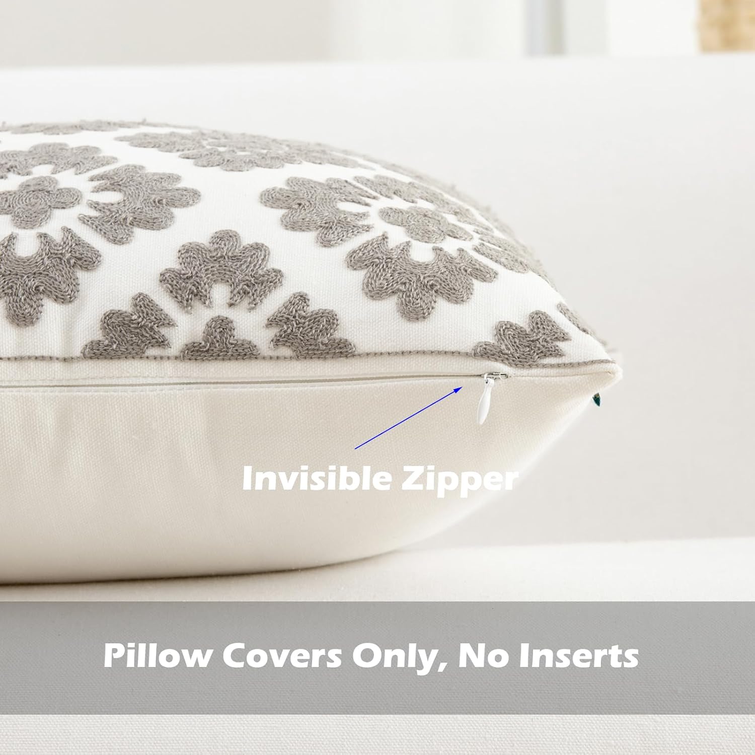 - Size & Material: This 18 x 18 inch (18 by 18) square throw pillow cover is made of 100% thick cotton canvas for durability. The crisp white fabric is soft yet sturdy, featuring beautiful single-sided embroidery for an elegant touch