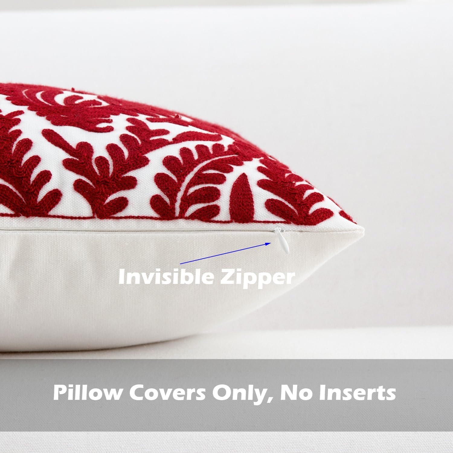 - Size & Material: This 18 x 18 inch (18 by 18) square throw pillow cover is made of 100% thick cotton canvas for durability. The crisp white fabric is soft yet sturdy, featuring beautiful single-sided embroidery for an elegant touch