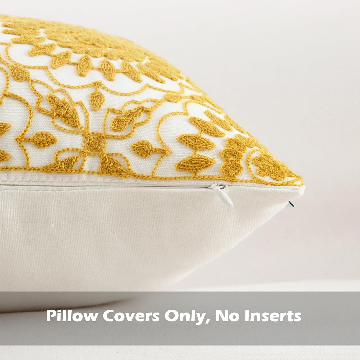 HWY 50 Yellow Decorative Throw Pillow Covers 18x18 Inch (1 Piece), Embroidered Cotton Farmhouse Cushion Cover Pillow Case for Sofa Couch Living Room Bed, Little Sunflower