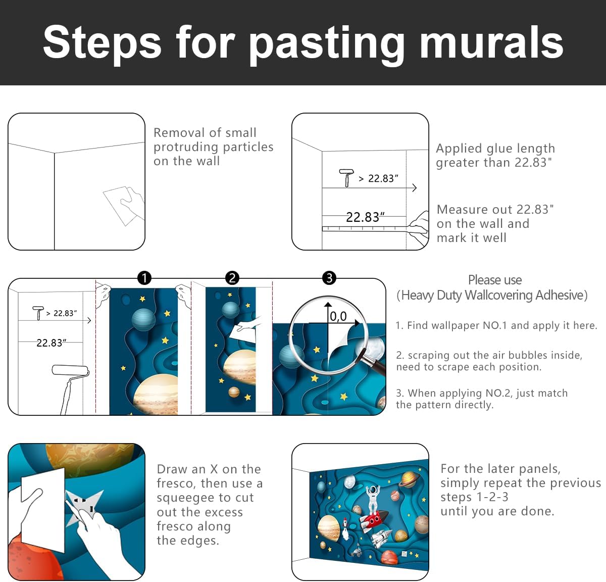 - 💕This mural installation does not need to overlap, just match in order according to the marked order below the panel.