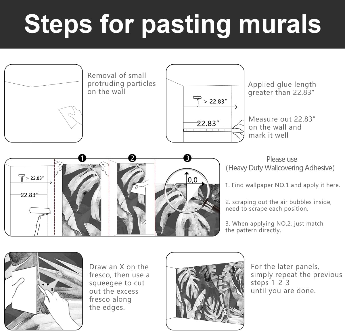 - 💕Wallpaper installation can refer to our main picture, the package will also be placed inside the installation instructions.