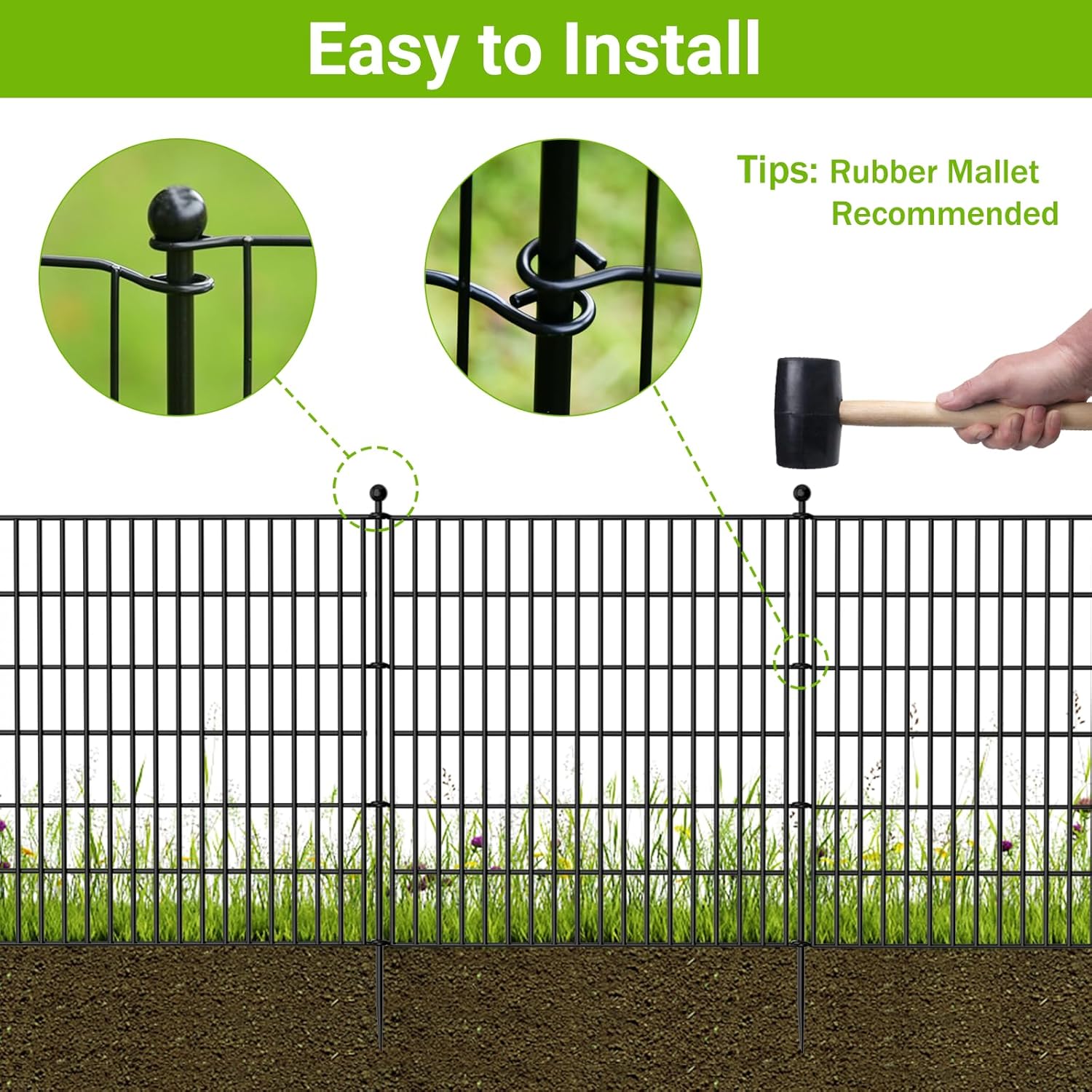 - EASY INSTALLATION WITH NO DIGGING>>Designed for effortless setup, our no-dig garden fencing comes with pre-assembled panels that anchor into the ground using ground stakes. Create a beautiful outdoor fence without the hassle of complicated installation processes or special tools.