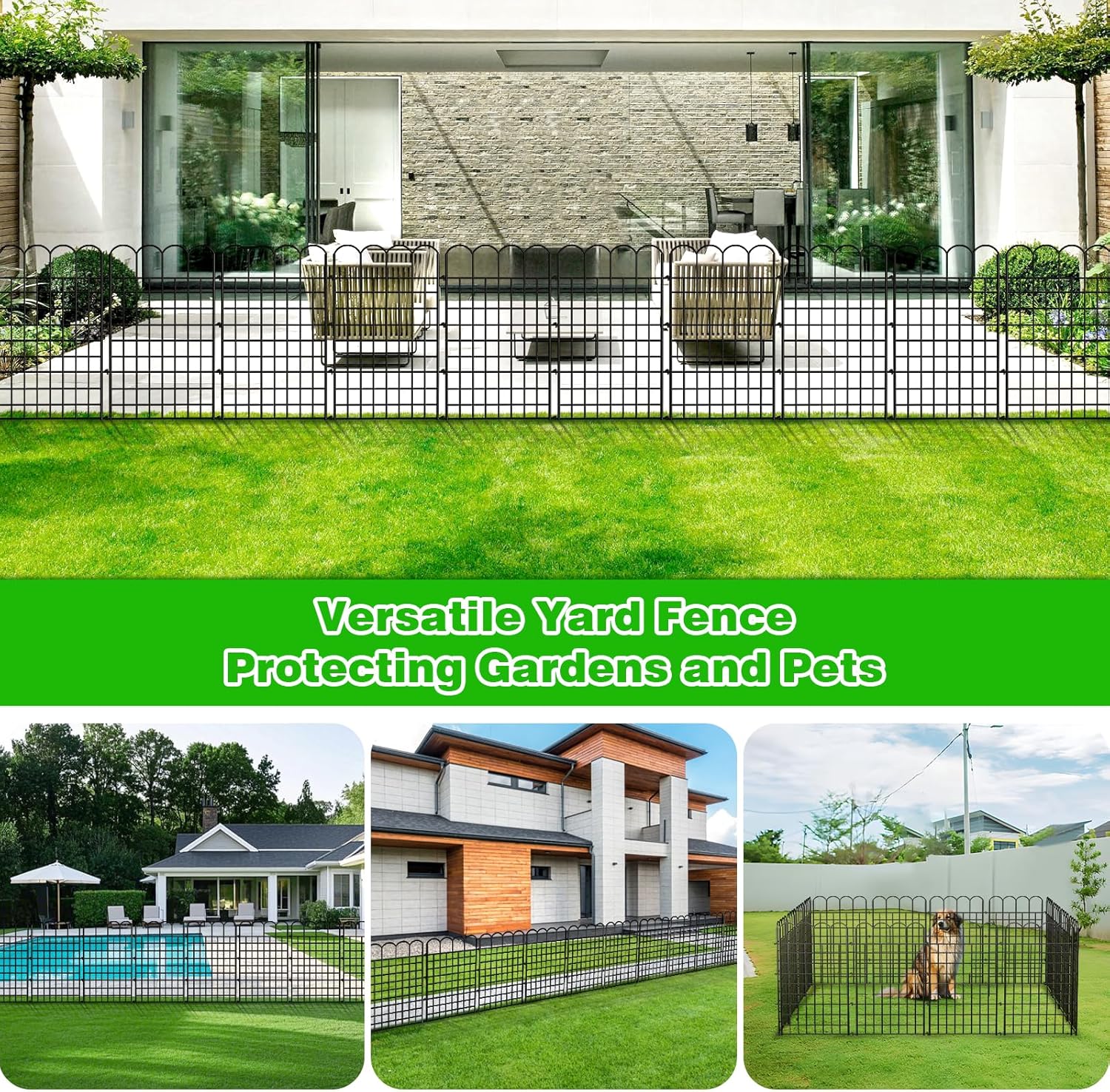 - Multipurpose Decorative Fence: The metal dog fence panels features a classic black design that perfectly complements any garden or patio style. This Patio Fence Can be Used as a Small Garden Fence or an Animal Barrier Fence. Great for protecting plants, trees and vegetables from small animals, it's also an ideal pet fence for dogs, chickens, rabbits and more