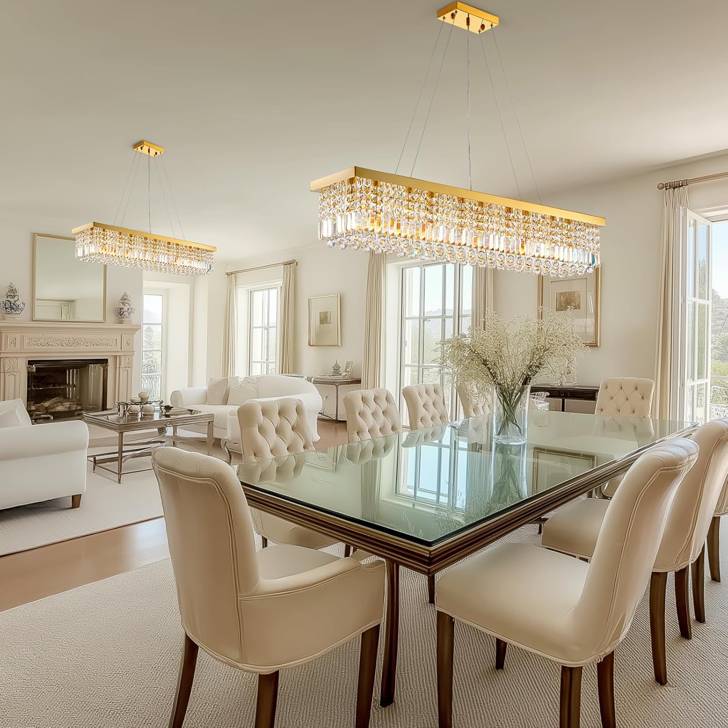 - 💎 【Shimmering K9 Crystals & Gold Light Fixture】Hand-selected K9 chandelier crystals cascade like raindrops from a polished gold light fixture, catching and refracting light to stunning effect. The refined finish and timeless rectangle chandelier design add depth and dimension to any modern setting, making it a showpiece among crystal chandeliers.